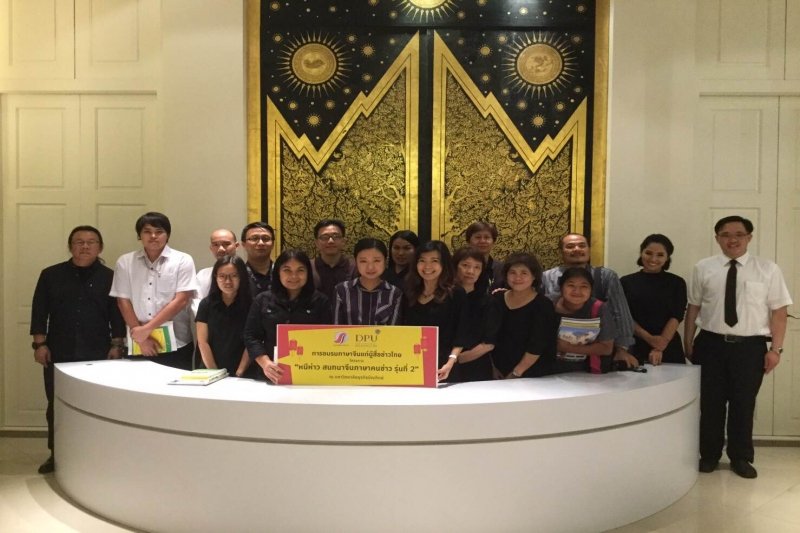 เมื่อวันที่ 19 ต.ค. ที่ตึกอธิการบดี มหาวิทยาลัยธุรกิจบัณฑิต สมาคมผู้สื่อข่าวไทย-จีน และมหาวิทยาลัยธุรกิจบัณฑิตย์ ร่วมจัดอบรมภาษาจีนแก่ผู้สื่อข่าวไทย ในโครงการ “หนีห่าว สนทนาจีน ภาษาคนข่าวรุ่นที่ 2” โดยมี ผศ.ดร.ทัณฑกานต์ ดวงรัตน์ รองอธิการบดีสายงานสื่อสารแบรนด์ม.ธุรกิจบัณฑิตย์ และนายภูวนาถ ณ สงขลา อุปนายกสมาคมผู้สื่อข่าวไทย-จีนร่วมกันกล่าวให้การต้อนรับ ทั้งนี้การอบรมดังกล่าวจะเริ่มตั้งแต่วันที่ 19 ต.ค. ถึง 30 พ.ย. รวม 7 ครั้ง โดยมีผู้สื่อข่าวให้ความสนใจเข้าร่วมอบรมจำนวน 30 คน ซึ่งผู้อบรมจะได้รับความรู้พื้นฐานด้านภาษาจีน และการสนทนาเบื้องต้น จากเจ้าของภาษาจีนโดยตรง