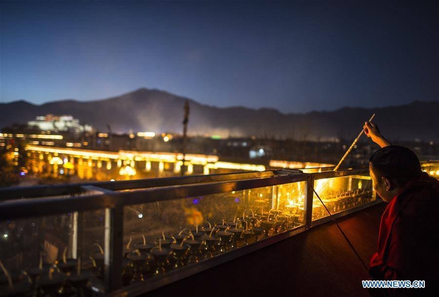ชมภาพที่ถูกบันทึกไว้ในวันที่ 23 ธันวาคม 2016 เมื่อบรรดาผู้แสวงบุญและผู้ศรัทธาต่างมารวมตัวกันที่วัดโจคัง ในเมืองลาซา เขตปกครองตนเองทิเบต ทางตะวันตกเฉียงใต้ของจีน