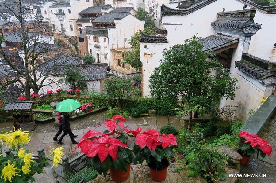ชมภาพที่ถูกบันทึกไว้เมื่อวันที่ 13 พฤศจิกายน 2016 ของสถาปัตยกรรมสไตล์หุย มุสลิมกลุ่มหนึ่งในประเทศจีน ซึ่งตั้งอยู่ในอำเภออู้หยวน มณฑลเจียงซี ทางตะวันออกของประเทศจีน