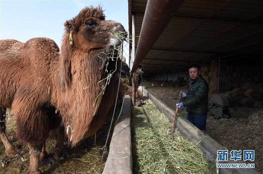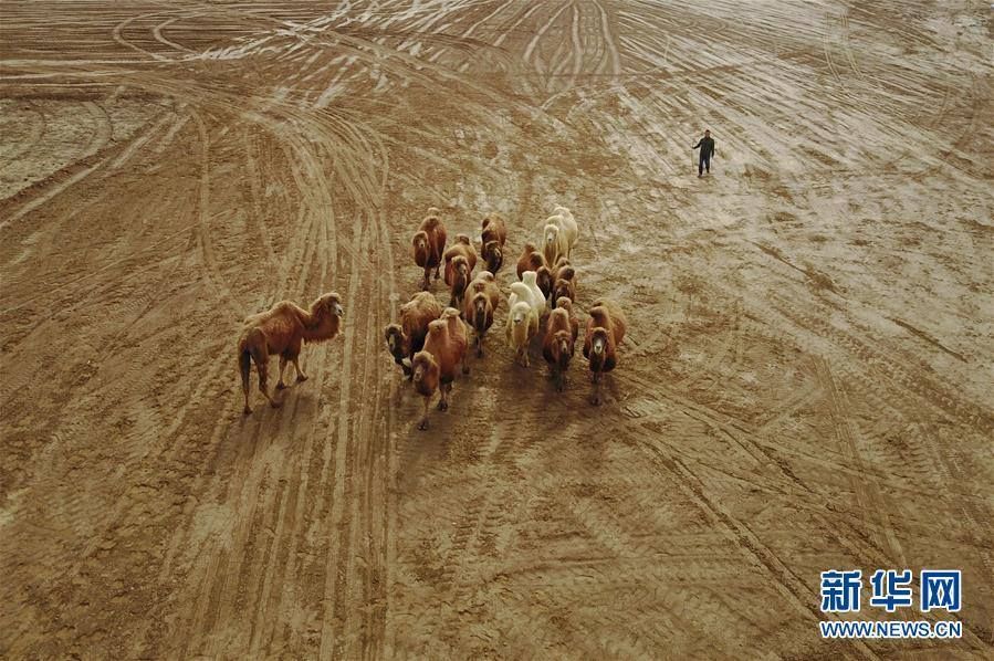 อู๋ปินเต๋อ กำลังปล่อยให้อูฐเดินในหมู่บ้านหลงจิ่ง เมืองจินชาง ซึ่งที่นี่เรียกนมอูฐว่าเป็น “ทองคำขาวแห่งทะเลทราย” เนื่องจากมีคุณค่าทางสารอาหารสูง