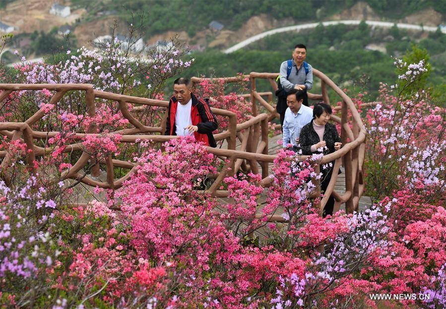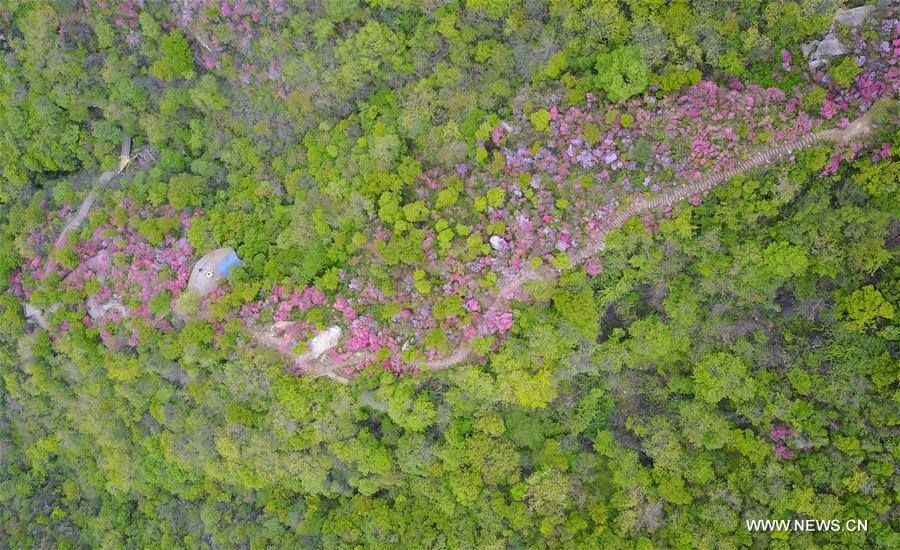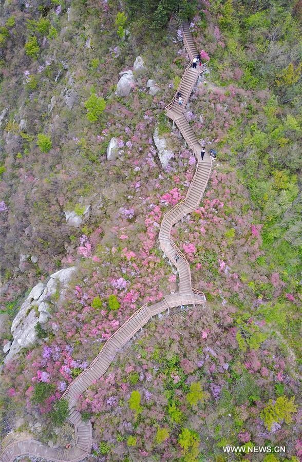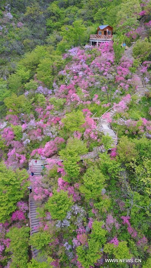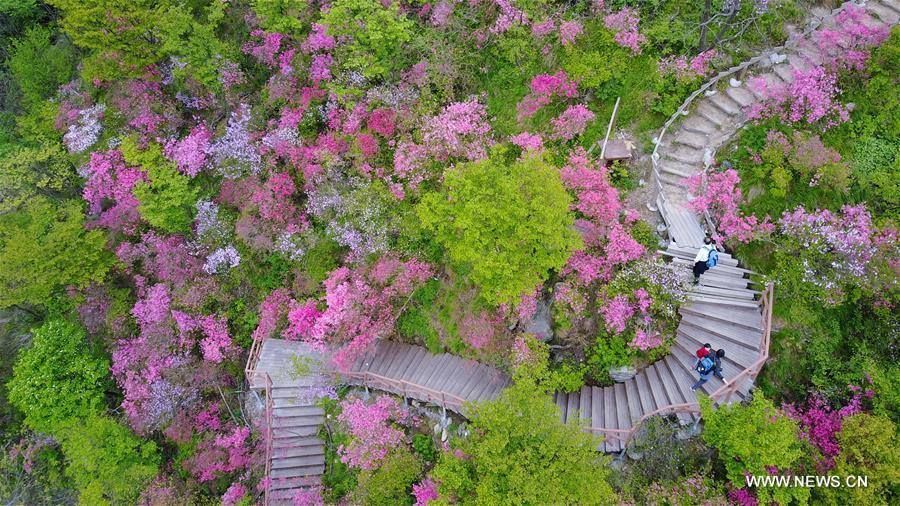 ต่างประเทศท่องเที่ยวรอบโลก ขั้นบันไดสู่วิมานสีชมพู หมู่อาซาเลียในหูเป่ย 23 เมษายน 2017 365 FacebookTwitterWhatsAppTelegramLINE ภาพถ่ายทางอากาศที่ถูกบันทึกไว้ในวันที่ 21 เมษายน 2017 ของเหล่านักท่องเที่ยวที่เดินทางมาชมดอกอาซาเลีย ที่บานสะพรั่งอยู่ในเทียนหม่าไจ้ อำเภอจิ่งซาน มณฑลหูเป่ย ทางตอนกลางของประเทศจีน
