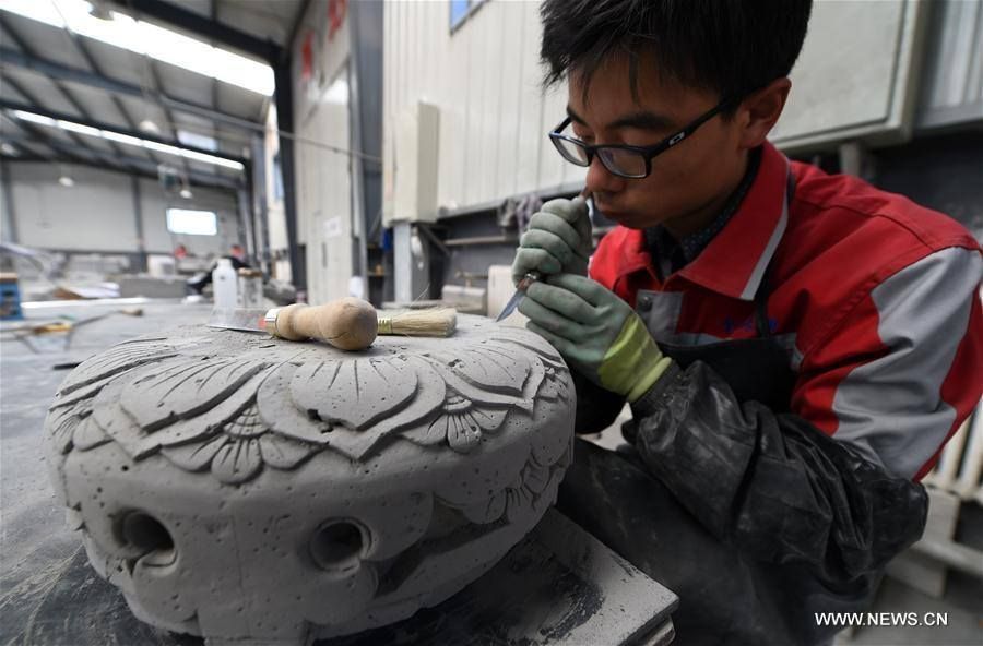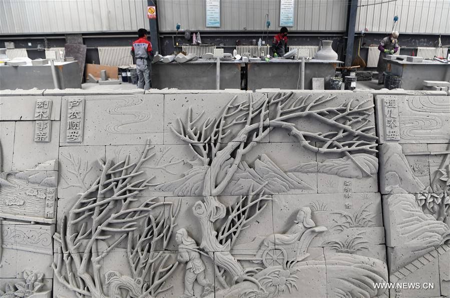 ชมภาพที่ถูกบันทึกไว้ในวันที่ 24 เมษายน 2017 ชมภาพการแกะสลักอิฐภายในโรงงาน เขตปกครองตนเองเผ่าหุยเมืองหลินเซี่ย มณฑลกานซู ทางตะวันตกเฉียงเหนือของประเทศจีน ซึ่งการแกะสลักอิฐหลินเซี่ยเช่นนี้ ถือเป็นศิลปะการตกแต่งอาคารในสมัยโบราณ ก่อนจะกลายมาเป็นรูปแบบศิลปะที่สมบูรณ์ และเฟื่องฟูอย่างมากในสมัยราชวงศ์หมิง (ค.ศ. 1368-1644) และราชวงศ์ชิง (ค.ศ.1644-1911) จนในปี 2006 ก็ได้รับการจดบันทึกให้เป็นมรดกทางวัฒนธรรมที่ไม่สามารถจับต้องได้ของประเทศจีน