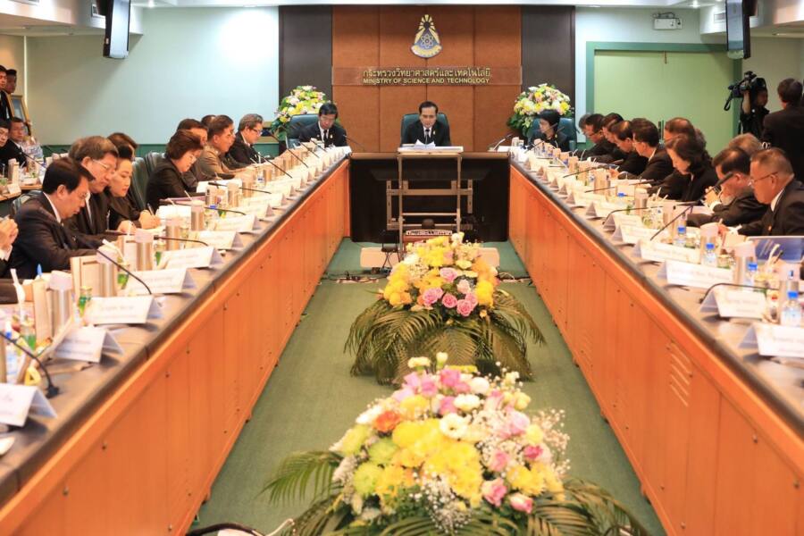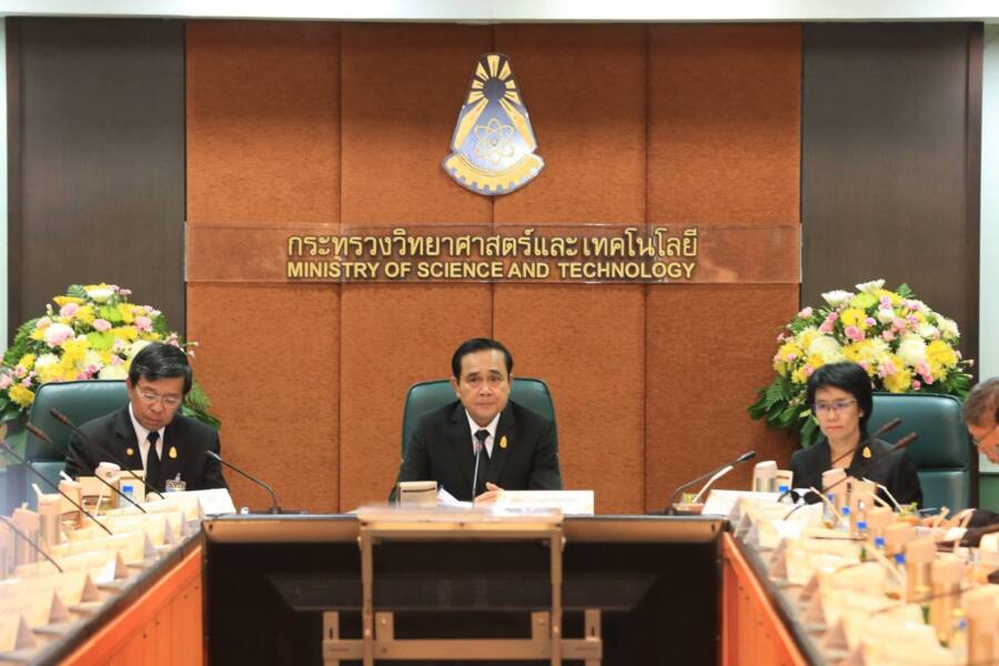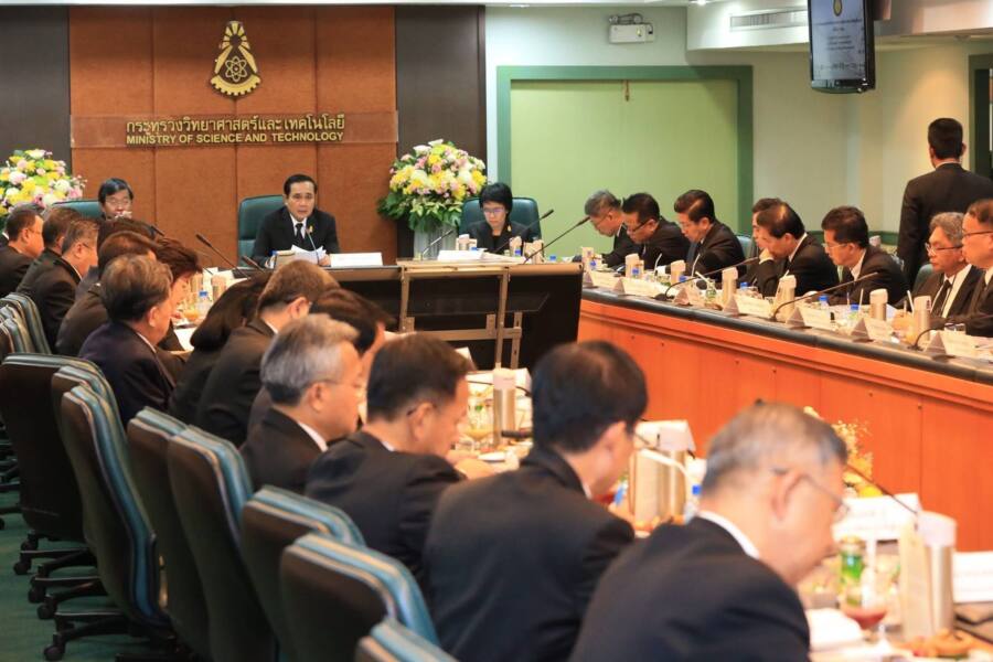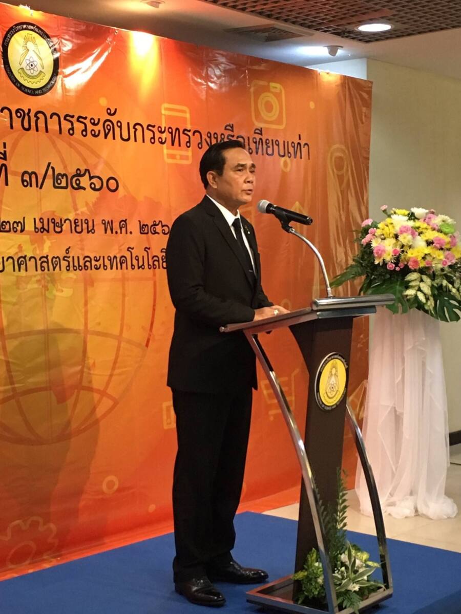 พลเอกประยุทธ์ จันทร์โอชา นายกรัฐมนตรีและหัวหน้าคณะรักษาความสงบแห่งชาติ (คสช.), พลเอกวิลาศ อรุณศรี เลขาธิการนายกรัฐมนตรี, นางเมธินี เทพมณี เลขาธิการคณะกรรมการข้าราชการพลเรือน และคณะเดินทางเข้าตรวจเยี่ยมกระทรวงวิทยาศาสตร์และเทคโนโลยี พร้อมเข้าร่วมการประชุมคณะหัวหน้าส่วนราชการระดับกระทรวงหรือเทียบเท่า ครั้งที่ 3/2560 และรับทราบผลการดำเนินงานของกระทรวงวิทยาศาสตร์และเทคโนโลยี เยี่ยมชมนิทรรศการของหน่วยงานภายใต้สังกัดกระทรวงวิทย์ฯ ตลอดจนแผนดำเนินงานของกระทรวงในอนาคต พร้อมมอบนโยบายแก่ผู้บริหารระดับสูง โดยมี ดร.อรรชกา สีบุญเรือง รัฐมนตรีว่าการกระทรวงวิทยาศาสตร์, รศ.นพ.สรนิต ศิลธรรม ปลัดกระทรวงวิทยาศาสตร์และคณะผู้บริหารระดับสูงของกระทรวงวิทยาศาสตร์และเทคโนโลยีให้การต้อนรับ