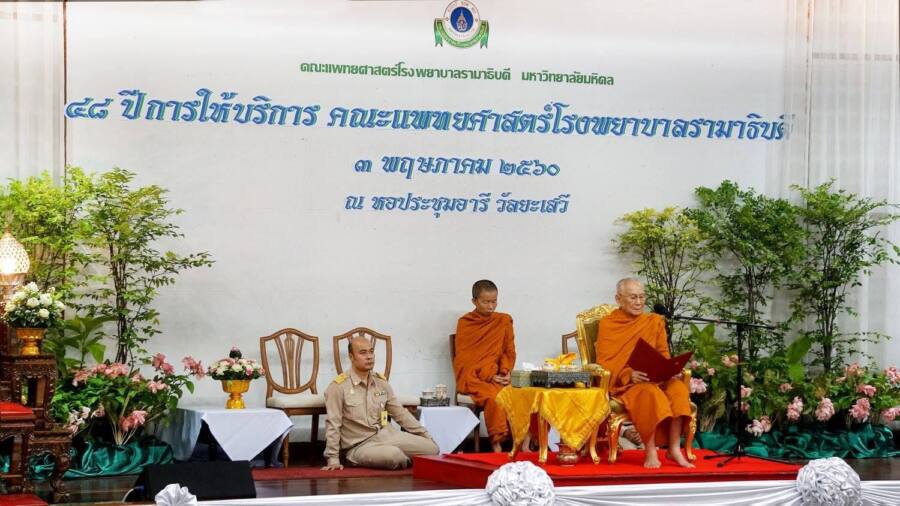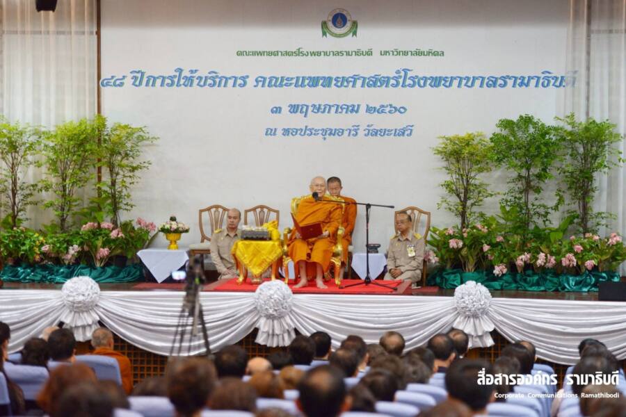 สมเด็จพระอริยวงศาคตญาณ สมเด็จพระสังฆราช (องค์ที่ 20) ทรงประทานพระโอวาท ในโอกาสคณะแพทยศาสตร์โรงพยาบาลรามาธิบดี มหาวิทยาลัยมหิดล เปิดดำเนินงานครบรอบ 48 ปี โดยมี ศ.นพ.ปิยะมิตร ศรีธรา คณบดีคณะแพทยศาสตร์โรงพยาบาลรามาธิบดี มหาวิทยาลัยมหิดล พร้อมด้วยคณะกรรมการประจำคณะฯ แพทย์ พยาบาล และบุคลากรรามาธิบดี เฝ้ารับเสด็จ