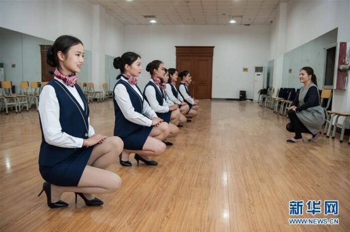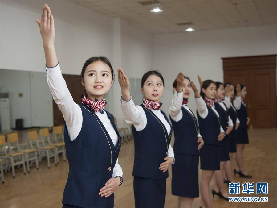 ชมภาพการฝึกหัดนักเรียนสาขาการบริการบนเครื่องบินชั้นปีที่ 1 ของวิทยาลัยอาชีวศึกษาวิศวกรรมการบิน ที่เมืองสือเจียจวง มณฑลเหอเป่ยเมื่อวันที่ 4 พฤษภาคมที่ผ่านมา