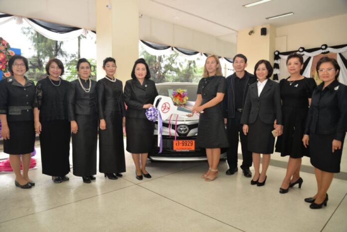 รางวัลที่ ๑ จำนวน ๑ รางวัล รถยนต์นั่งส่วนบุคคล ยี่ห้อ TOYOTA VIOS ๑.๕ J A/T เลขที่ออก ๑๘๒๖๗ ผู้ถูกรางวัล คุณศรัญญา มาศหิรัญ จากจังหวัดตราด