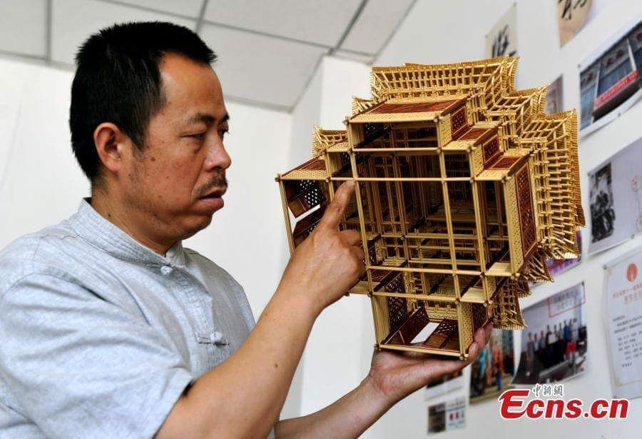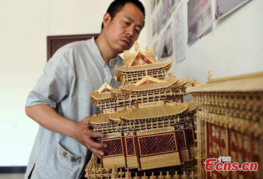 นายจ้าวยุ่นเซิง ได้อวดผลงานแบบจำลอง “กู้กง” พระราชวังต้องห้ามของจีนที่เขาสร้างขึ้นเองจากต้นข้าวฟ่าง ในสตูดิโอของเขาในเมืองฉือเจียจวง เมืองหลวงของมณฑลเหอเป่ย ทางตอนเหนือของประเทศจีน นายจ้าวมีความหลงใหลในงานฝีมือเช่นนี้อย่างมาก เขาได้สร้างผลงานขึ้นจากต้นฟางข้าวตั้งแต่ปี 1993 มากว่า 1,000 ชิ้นแล้ว โดยไม่ได้ใช้แม้แต่กาวหรือเชือก งานฝีมือของเขาได้รับการยกย่องให้เป็นมรดกทางวัฒนธรรมที่จับต้องไม่ได้ของจีน