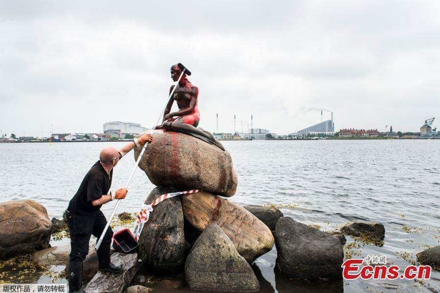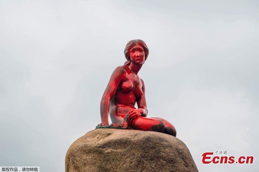 ชมภาพที่ถูกบันทึกไว้ในวันที่ 30 พฤษภาคม 2017 เมื่อรูปปั้นนางเงือกน้อยในเมืองโคเปนเฮเกน ประเทศเดนมาร์ก ได้ถูกละเลงสีใหม่จนกลายเป็นสีแดงฉาน อีกทั้งบริเวณพื้นด้านหน้ารูปปั้นดังกล่าวก็มีข้อความสีแดงเขียนไว้ว่า “เดนมาร์กควรปกป้องวาฬของหมู่เกาะแฟโร” ซึ่งดูเหมือนจะสื่อถึงเทศกาลล่าวาฬพันธุ์นำร่องในหมู่เกาะแอตแลนติกเหนือที่จัดขึ้นเป็นประจำทุกปี ในช่วงฤดูร้อน