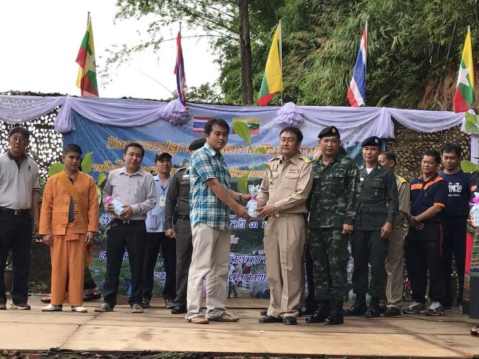 วันนี้ (13 มิ.ย. 2560) พ.อ.ธงชัย มีอนันต์ รอง ผบ.ฉก.ม.3 เป็นประธานในพิธี กิจกรรมปลูกป่าตามโครงการผืนป่าอาเซียน พร้อมด้วย พล.จ.ตานอู รองแม่ทัพภาคทหารบก พื้นที่สามเหลี่ยม พล.ท.คำรณ เครือวิชฌยาจารย์ เจ้ากรมกิจการชายแดนทหาร พล.ต.สุภโชค ธวัชพีระชัย รองแม่ทัพภาค3 พ.อ.กิดากร จันทรา ผบ.ฉก.ม.3 ประธาน TBC ฝ่ายไทย รวมทั้งหน่วยงานภาครัฐไทย-เมียนมา และประชาชนชาวเมียนมา 150 คน ประชาชนไทย 350 คน รวม 500 คน ร่วมกิจกรรมโครงการหมู่บ้านเข้มแข็งคู่ขนาน ตามแนวชายแดนไทย-เมียนมา ณ.บ้านวังลาว ต.เวียง อ.เชียงแสน จ.เชียงราย กับ บ.ทุ่ง จ.ท่าขี้เหล็ก สหภาพเมียนมา พร้อมทั้งให้บริการทางการแพทย์เคลื่อนที่แก่ผู้เข้าร่วมกิจกรรม จาก รพ.ค่ายเม็งรายมหาราช และยังมีกล้าไม้จำนวน 2,000 ต้น โดยใช้ในพื้นที่การปลูกป่าจำนวน 5 ไร่ ตามโครงการปลูกผืนป่าอาเซียน