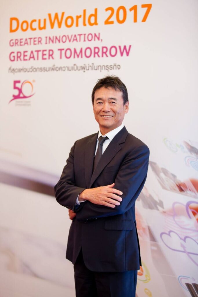 มร. โคจิ เทสึกะ ประธาน บริษัท ฟูจิ ซีร็อกซ์ (ประเทศไทย) จำกัด กล่าวแถลงความยินดีในงาน DocuWorld2017 ว่า ฟูจิ ซีร็อกซ์ ได้ดำเนินธุรกิจในประเทศไทยครบรอบ 50 ปี ด้วยความสัมพันธ์ที่แน่นแฟ้นกับทุกธุรกิจในประเทศไทย จึงมุ่งมั่นที่จะเติบโตควบคู่ไปกับเศรษฐกิจของประเทศไทย ไปพร้อมกับการยึดมั่นในปณิธานที่จะเป็นองค์กรที่ให้ความสำคัญต่อการรับผิดชอบสังคมและสิ่งแวดล้อม และส่งเสริมประเทศไทยเป็นฐานการผลิตที่สำคัญของภูมิภาคอาเซียน โดยฟูจิ ซีร็อกซ์ มีความพร้อมที่จะลงทุนและสร้างโอกาสในธุรกิจใหม่ ๆ เพื่อตอบสนองความต้องการของลูกค้าที่กำลังมองหาเทคโนโลยี ที่จะมาสนับสนุนการทำงานให้มีประสิทธิภาพ ด้วยการนำเสนอโซลูชั่นและบริการที่คิดค้นเพื่อธุรกิจของคนไทย โดยต้องการให้นวัตกรรมการทำงานของฟูจิ ซีร็อกซ์เป็นส่วนหนึ่งในการสร้างศักยภาพให้ลูกค้ามีความพร้อมที่จะแข่งขันและเป็นผู้นำในยุคเศรษฐกิจดิจิทัลได้ โดยพร้อมกันนี้ได้ประกาศจัดงาน DocuWorld2017 งานแสดงและสาธิตนวัตกรรมประจำปี ภายใต้แนวคิด “Greater Innovation, Greater Tomorrow” เพื่อนำเสนอแนวคิดในการทำงานรูปแบบใหม่ ๆ ให้สอดคล้องกับการเปลี่ยนแปลงการทำงานเข้าสู่รูปแบบดิจิทัลอย่างครบวงจร