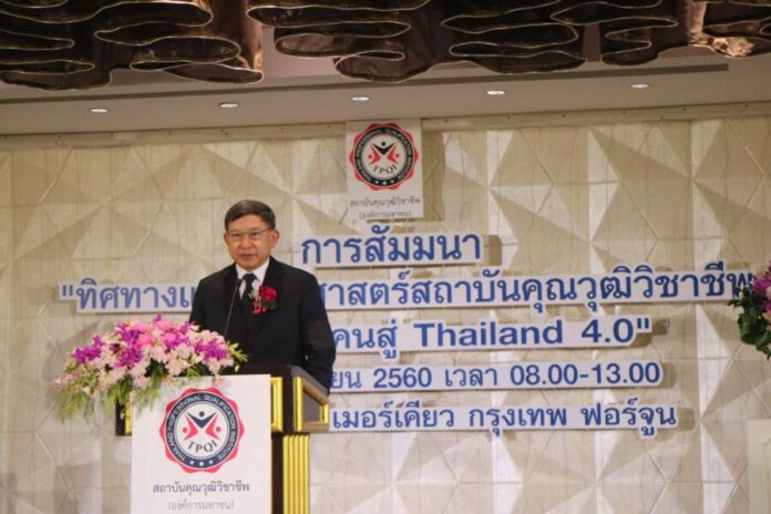 สถาบันคุณวุฒิวิชาชีพ ระดมความคิดเห็นจากภาครัฐและเอกชน จัดสัมมนา “ทิศทางและยุทธศาสตร์สถาบันคุณวุฒิวิชาชีพ เพื่อเตรียมคนสู่ไทยแลนด์ 4.0” รองนายกฯประจินชี้ไทยต้องมีระบบคุณวุฒิวิชาชีพในการส่งเสริมการเรียนรู้ตลอดชีวิตและสร้างคนให้เอื้อต่อการปรับอุตสาหกรรมและเศรษฐกิจให้เป็น 4.0