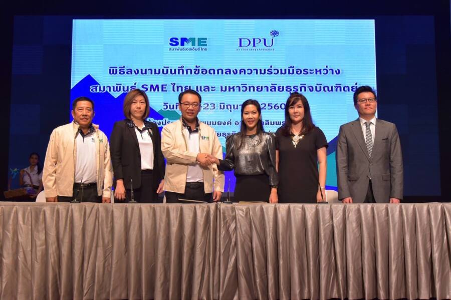 ทั้งนี้ DPU ได้ลงนามความร่วมมือ MOU ร่วมกับ สมาพันธ์ SME ไทย ในการจัดตั้ง “สถาบันเพื่อการนวัตกรรม SME” ภายใต้การกำกับดูแลของวิทยาลัยบริหารธุรกิจนวัตกรรมและการบัญชี (CIBA) โดยสถาบันฯ มีจุดมุ่งหมายในการเสริมทัพความแข็งแกร่งให้กับ SME และเพื่อให้มหาวิทยาลัยมีส่วนร่วมในการพัฒนาองค์ความรู้เพื่อสนับสนุน SME ในด้านต่างๆ เช่น ด้านเทคโนโลยี การตลาดสมัยใหม่ Digital marketing การบริหารเงินทุน การทำบัญชี การพัฒนานวัตกรรมสินค้าและบริการ เป็นต้น