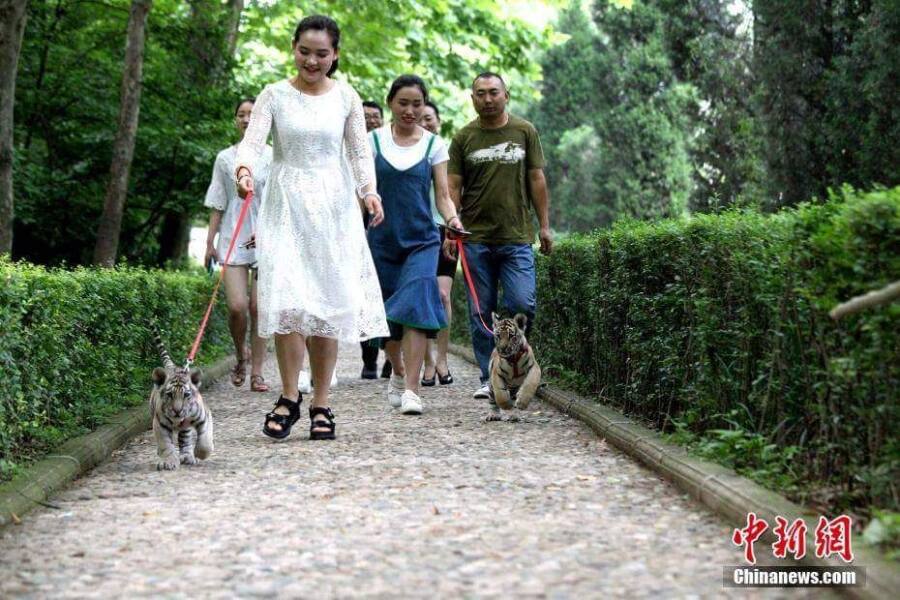 เมื่อเร็วๆนี้ มีกลุ่มสาวจีนพาลูกเสือสองตัวไปเดินเล่นในสวนฝูหนิวซาน เมืองลั่วหยางของมณฑลเหอหนาน ซึ่งได้รับความสนใจจากคนที่อยู่แถวนั้นเป็นอย่างมาก