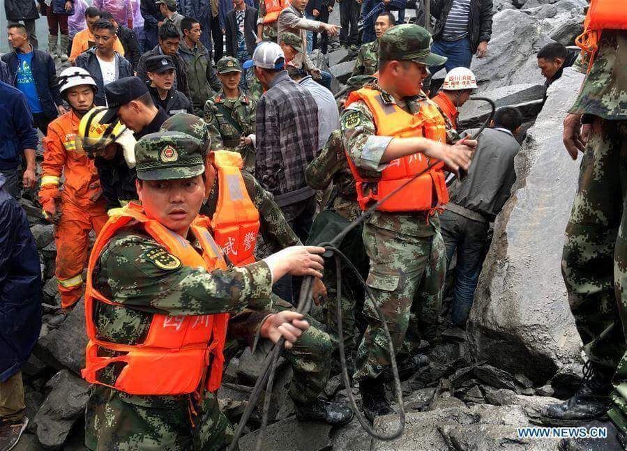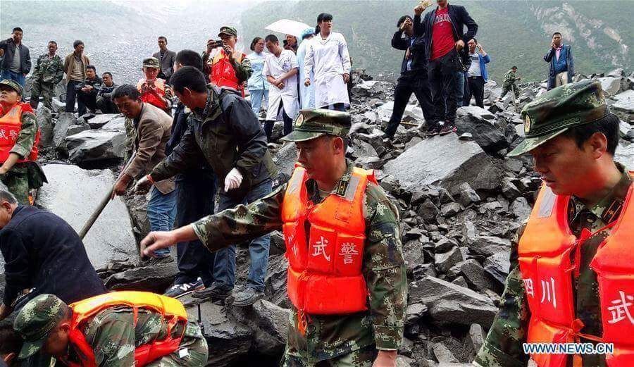 มวลดินปริมาณมหาศาลจากเขาสูงในแคว้นปกครองตนเองทิเบตอาป้า มณฑลเสฉวน ได้ถล่มทับหมู่บ้านซินโม๋ของอำเภอเม่าเสี้ยน รวมถึงปิดกั้นแม่น้ำและถนนสายยาว 1,600 เมตร เมื่อเวลาราว 6.00 น. ตามเวลาท้องถิ่นของวันเสาร์ (24 มิ.ย.) โดยหน่วยกู้ภัยเผยบ้านเรือนจมดิน 62 หลัง และมีผู้สูญหายมากกว่า 120 คน