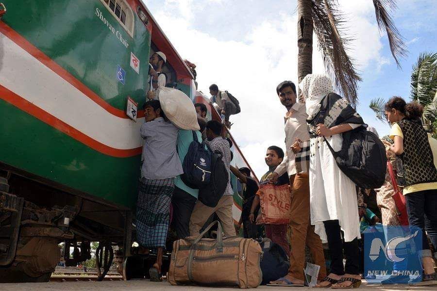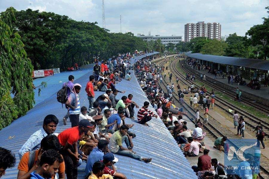 ผู้โดยสารชาวบังคลาเทศจำนวนมากเบียดเสียดกันบนรถไฟที่สถานีรถไฟในในกรุงธากาเมืองหลวงของบังคลาเทศเมื่อวันที่ 24 มิถุนายน ที่ผ่านมา เพื่อเตรียมมุ่งหน้ากลับบ้านเกิดก่อนวันเฉลิมฉลองการออกศีลอดของชาวมุสลิมหรือวันอีดิลฟิฏรี (Eid-ul-Fitr) ซึ่งเป็นวันแห่งการสิ้นสุดเทศกาลถือศีลอดรอมฎอน