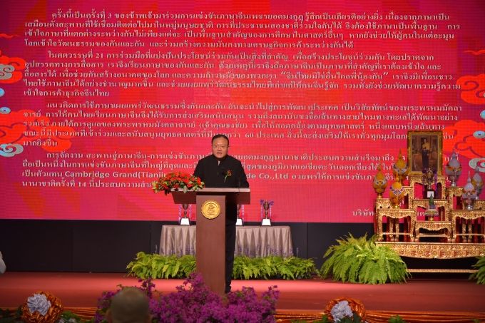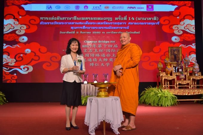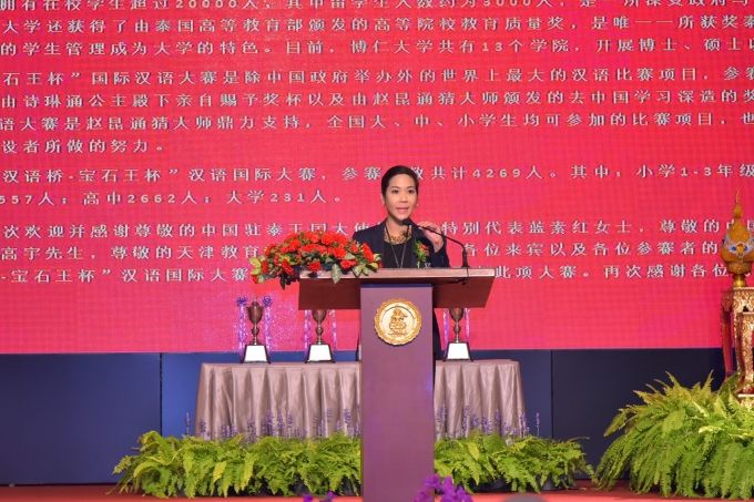ดร.ดาริกา ลัทธพิพัฒน์ อธิการบดี มหาวิทยาลัยธุรกิจบัณฑิตย์ กล่าวว่า ภาษาจีนเป็นภาษาที่มีความสำคัญกับสังคมไทย โดยเฉพาะการใช้ภาษาเพื่อการติดต่อสื่อสารกับคนจีน ซึ่งประเทศจีนก็มีบทบาทสำคัญอย่างมากในทางเศรษฐกิจและสังคมของโลก ฉะนั้นการเรียนรู้ภาษาจีน จึงเป็นประโยชน์ในทางสังคมและถือว่าเป็นเรื่องสำคัญอย่างมาก โครงการเพชรยอดมงกุฎเป็นอีกหนึ่งโครงการที่เปิดให้โอกาสแก่นักเรียน นักศึกษาทุกสังกัดทั่วประเทศสามารถเข้าร่วมการแข่งขันได้โดยการอุปถัมภ์โครงการจากพระพรหมมังคลาจารย์ นับได้ว่าเป็นโครงการที่มีส่วนช่วยเหลือประเทศชาติในการเสริมสร้างคุณธรรมและส่งเสริมความรู้ความสามารถของนักเรียน นักศึกษา นับได้ว่าเป็นพลังสำคัญประการหนึ่งในการพัฒนาเยาวชนของประเทศชาติ