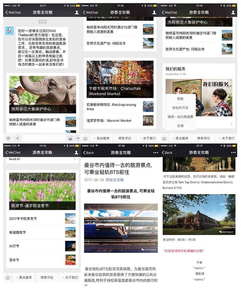 การท่องเที่ยวแห่งประเทศไทย (ททท.) จึงเพิ่มช่องทางการสื่อสารกับกลุ่มนักท่องเที่ยวชาวจีนผ่านระบบออนไลน์ด้วยการเปิด Account ชื่อ “VisitThailand” ในแอปพลิเคชัน Wechat เพื่อยกระดับการให้บริการข่าวสารแก่กลุ่มนักท่องเที่ยวหลักของไทย โดยได้ทำการเปิดตัวอย่างเป็นทางการไปเมื่อวันที่ 5 กันยายน 2560 ที่บริเวณสวนลอยฟ้า ชั้น 5 ห้างสรรพสินค้าเอ็มควอเทียร์ กรุงเทพฯ