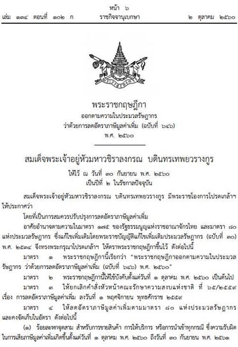 วันที่ 2 ตุลาคม ที่ผ่านมาได้มีการเผยแพร่พระราชกฤษฎีกา โดยมีรายละเอียดเกี่ยวกับการปรับภาษีมูลค่าเพิ่ม (VAT)ใน 2 ประเด็น คือ คงอัตราเดิมที่ 7% (รวมภาษีท้องถิ่น) ไว้ 1 ปีนับจากวันประกาศพระราชกฤษฎีกา และ มีการเพิ่มภาษีมูลค่าเพิ่มให้เป็น 9% โดยมีผลบังคับใช่เริ่มตั้งแต่ 1 ตุลาคม พ.ศ.2561 หลายคนคงตั้งคำถามกันแล้วว่ามันจะกระทบอย่างไรกับเราและเศรษฐกิจโดยรวมของประเทศไทย ขอเริ่มต้นด้วยรูปแบบภาษี โดยปกติแล้วรัฐบาลจะมีรายรับจากเงินภาษี (Taxes) อยู่ 2 รูปแบบ คือ ภาษีจากรายได้บริษัทและรายได้ส่วนบุคคล (Income Tax) และ ภาษีมูลค่าเพิ่ม (VAT) ที่จริงแล้วการเก็บภาษีมูลค่าเพิ่มนั้นมีมาตั้งแต่สมัยร้อยปีก่อน โดยเริ่มใช้ครั้งแรกที่ประเทศเยอรมันและ ต่อมาที่ประเทศฝรั่งเศส โดยเดิมทีเรียกภาษีนี้ว่า “Production tax” แล้วจึงมีการนิยามคำว่า VAT (Value Added Tax) ในเวลาต่อมา