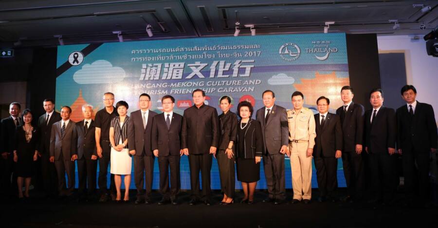 วันที่ 16 ตุลาคม 2560 พล.อ. ธนะศักดิ์ ปฏิมาประกร รองนายกรัฐมนตรีและนายหลู่ เจี้ยน เอกอัครราชทูตสาธารณรัฐประชาชนจีนประจำประเทศไทยให้การต้อนรับคณะคาราวานรถยนต์สานสัมพันธ์วัฒนธรรมและการท่องเที่ยวล้านช้างแม่โขงไทย-จีน ปี 2560 ณ ศูนย์วัฒนธรรมแห่งสาธารณรัฐประชาชนจีนประจำประเทศไทย กรุงเทพฯ โดยมีตัวแทนจากทั้งประเทศในเขตลุ่มน้ำล้านช้างแม่โขง อาทิ นายหวัง เฉิน รองอธิบดีกรมวิเทศสัมพันธ์ กระทรวงวัฒนธรรมของจีน นางหวัง เจี้ยนหวิน รองเลขาธิการเทศบาลนครหนิงโป นางกอบกาญจน์ วัฒนวรางกูร รัฐมนตรีว่าการกระทรวงการท่องเที่ยวและกีฬา นางฉวีรัตน์ เกษตรสุนทร ผู้ช่วยรัฐมนตรีประจำกระทรวงวัฒนธรรม รวมทั้งเอกอัครราชทูตกัมพูชา, เอกอัครราชทูตสาธารณรัฐสังคมนิยมเวียดนามและเอกอัครราชทูตเมียนมาประจำประเทศไทยให้เกียรติเข้าร่วมงาน