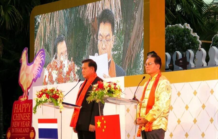 พล.อ.ธนะศักดิ์ ปฏิมาประกร รองนายกรัฐมนตรีในฐานะตัวแทนรัฐบาลไทย ได้กล่าวขอบคุณที่ทางจีนนำคณะนักแสดงและพ่อครัวฝีมือดีมาร่วมงานตรุษจีนในปีนี้ และขออวยพรให้ชาวจีน ชาวไทยเชื้อสายจีน มีความสุข สุขภาพแข็งแรงและขอให้ความสัมพันธ์ไทยจีนแน่นแฟ้นยั่งยืนตลอดไป