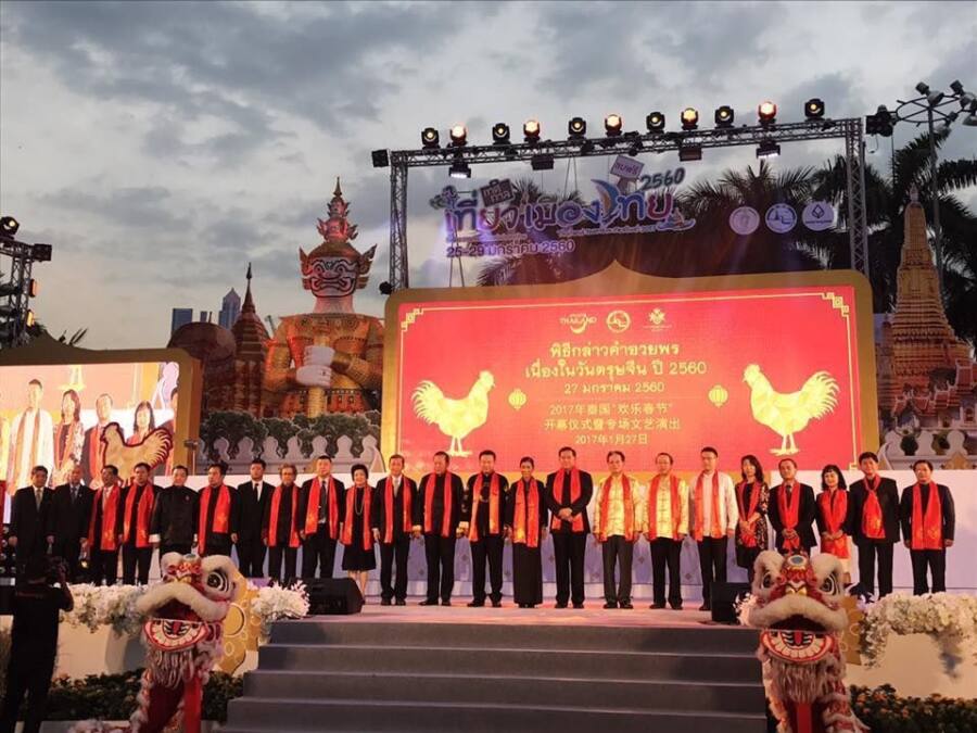 เมื่อวันที่ 27 มกราคมที่ผ่านมา พล.อ.ธนะศักดิ์ ปฏิมาประกร รองนายกรัฐมนตรี และนายหนิง ฟู่ขุย เอกอัครราชทูตสาธารณรัฐประชาชนจีนประจำประเทศไทย เป็นประธานในพิธีกล่าวคำอวยพรเนื่องในโอกาสเทศกาลตรุษจีน “ตรุษจีนวิถีไทย เก๋ไก๋ปีระกา 2560” พร้อมด้วยนางกอบกาญจน์ วัฒนวรางกูร รัฐมนตรีว่าการกระทรวงการท่องเที่ยวและกีฬา นายเซี่ยะ จินอิ่ง อธิบดีกรมวิเทศสัมพันธ์ กระทรวงวัฒนธรรม สาธารณรัฐประชาชนจีน และนายยุทธศักดิ์ สุภสร ผู้ว่าการททท. ซึ่งงานนี้จัดอย่างยิ่งใหญ่มีผู้เข้าร่วมมากมายทั้งชาวไทยและชาวต่างชาติ