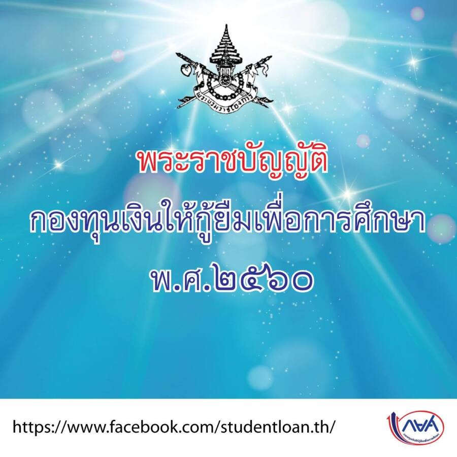 คลิกอ่าน พระราชบัญญัติกองทุนเงินให้กู้ยืมเพื่อการศึกษา พ.ศ.๒๕๖๐ https://www.studentloan.or.th/public/upload/20173001.pdf