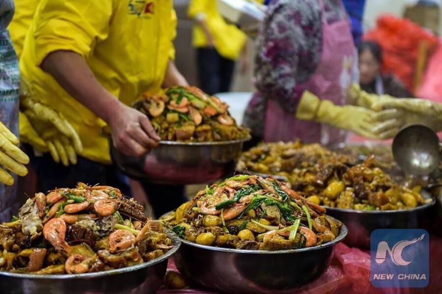 ประชาชนกว่า 3,000 คนที่นั่งประจำโต๊ะกว่า 300 ตัวในเมืองเซินเจิ้น ทางตอนใต้ของประเทศจีน ต่างเพลิดเพลินไปกับการทานอาหารแบบดั้งเดิมของชาวจีนฮากกา ที่เรียกว่า “ผู่นชอย” (Poon Choi) หรือ “เผินไช่” (盆菜) ในภาษาจีนกลาง อันมีความหมายถึง อาหารชามใหญ่