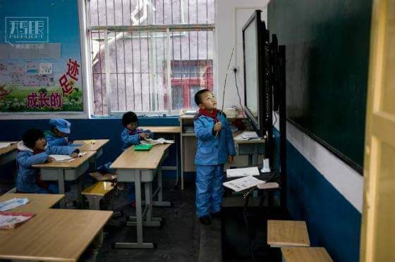 ในภาพคือเด็กนักเรียน “โรงเรียนประถมกองทัพทหารแดงหยาง เต๋อเจ้อ เมืองจุนอี้” (หยาง เต๋อเจ้อ คือชื่อนายพลชื่อดังแห่งกองทัพทหารแดง)กำลังเข้าชั้นเรียน นอกจากการเรียนหนังสือตามปกติทั่วไปแล้ว เด็กๆที่นี่ยังจะได้รับการฝึกอบรมความรู้ด้านประวัติศาตร์เกี่ยวกับกองทัพทหารแดง รวมถึงเน้นฝึกให้เด็กมีความอดทนและมุมานะอีกด้วย ซึ่งชุดเครื่องแบบทหารแดงที่เห็นในภาพจะใส่เฉพาะในวันสำคัญๆ หรือวันที่มีการรับรางวัลเท่านั้น