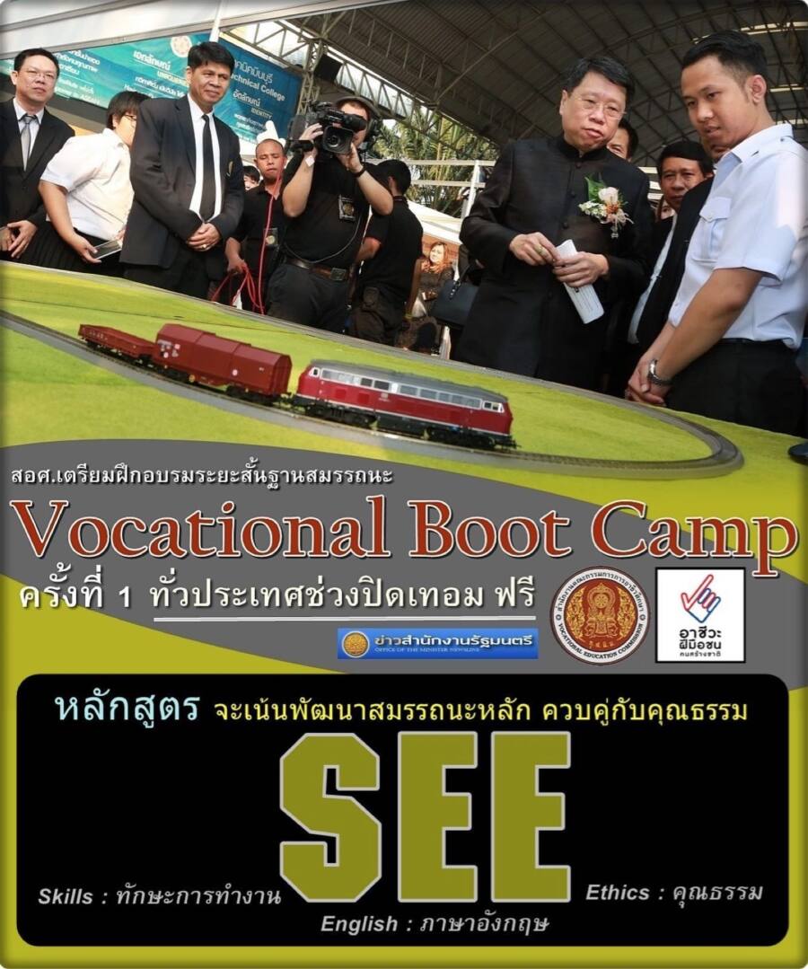เมื่อวันพุธที่ 1 มีนาคม 2560 ณ วิทยาลัยเทคนิคมีนบุรี สำนักงานคณะกรรมการการอาชีวศึกษา (สอศ.) จัดงานเปิดตัวโครงการ “ฝึกอบรมหลักสูตรวิชาชีพระยะสั้นฐานสมรรถนะ ภาคฤดูร้อน” ครั้งที่ 1 (Education to Employment : Vocational Boot Camp) โดยมี นพ.ธีระเกียรติ เจริญเศรษฐศิลป์ รัฐมนตรีว่าการกระทรวงศึกษาธิการ เป็นประธานพิธีเปิด พร้อมทั้งได้รับเกียรติจาก Dr Gatot Hari Priowirjanto ผู้อำนวยการสำนักงานเลขาธิการซีมีโอ ตลอดจนผู้บริหารกระทรวงศึกษาธิการ สถานประกอบการ สถานศึกษาอาชีวศึกษา คณะครู นักเรียนนักศึกษา เข้าร่วมพิธีเปิดกว่า 300 คน