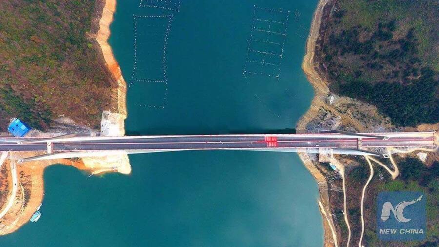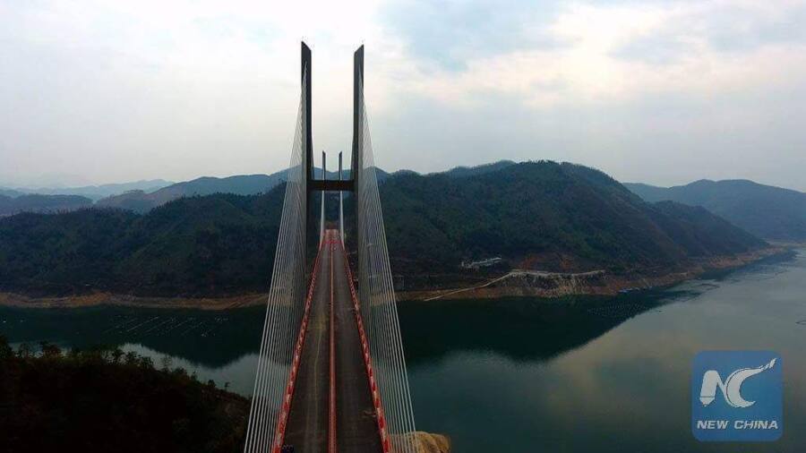 สะพานแห่งนี้มีความยาว 956 เมตร ตั้งอยู่ระหว่างมณฑลกุ้ยโจวกับเขตการปกครองตนเองกว่างซีจ้วง ทางตะวันตกเฉียงใต้ของจีน เป็นส่วนหนึ่งของทางด่วนที่ยาว 2,280 กิโลเมตร ที่เชื่อม 5 มณฑลทางตะวันตกของจีน ซึ่งหากว่าสร้างเสร็จแล้วจะกลายเป็นเส้นทางหลักที่จะเชื่อมต่อจีนกับประเทศในเอเชียตะวันออกเฉียงใต้ต่อไป
