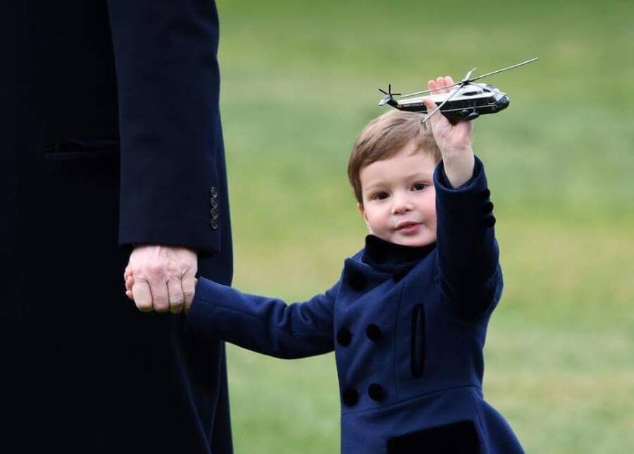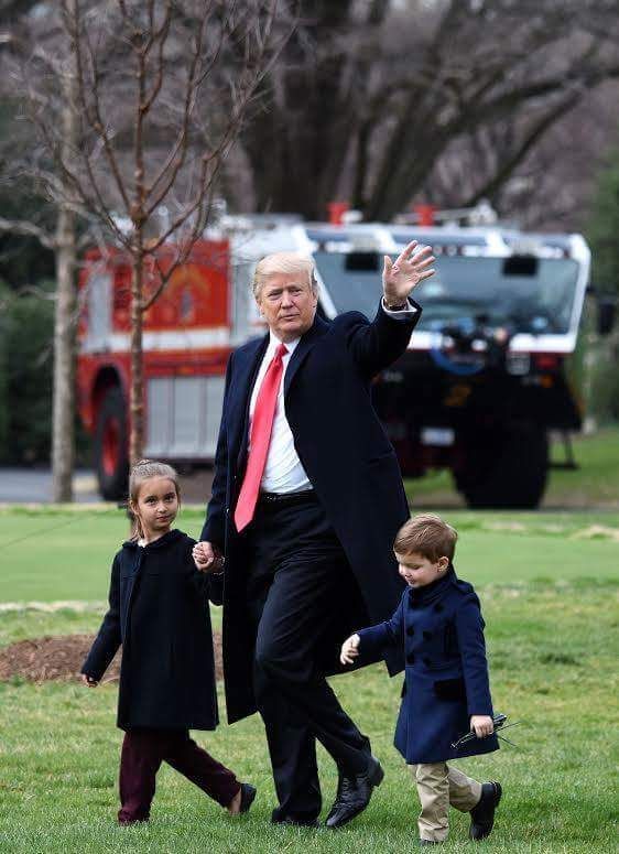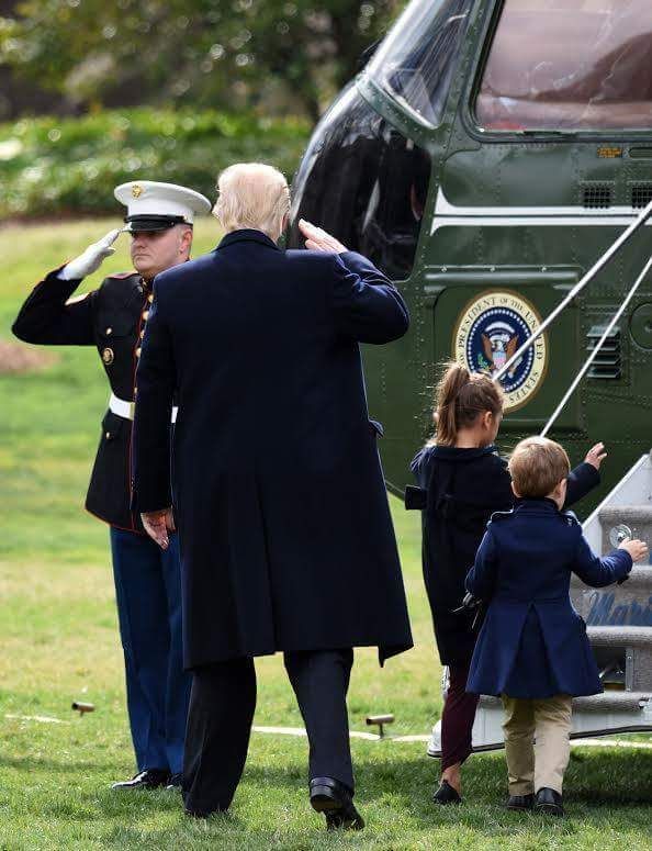 ชมภาพขณะ โดนัลด์ ทรัมป์ ประธานาธิบดีของสหรัฐอเมริกา จูงมือหลานสาว “อราเบลลา คุชเนอร์” และหลานชาย “โจเซฟ คุชเนอร์” ขึ้นเฮลิคอปเตอร์ประจำตำแหน่งประธนาธิบดีแห่งสหรัฐฯ ” Marine One” ก่อนที่พวกเขาจะออกเดินทางจากทำเนียบขาว ในกรุงวอชิงตัน ดี.ซี. สหรัฐอเมริกา