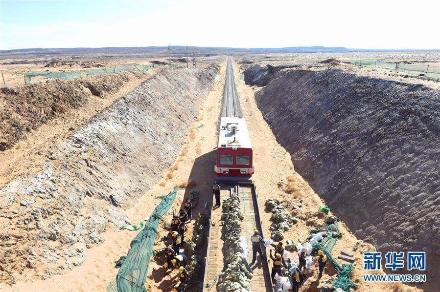 ตั้งแต่เริ่มเปิดใช้บริการเมื่อปี 2009 ทางรถไฟดังกล่าวก็ถูกก่อกวนจากพายุทราย ดังนั้นเพื่อไม่ให้การสัญจรของรถไฟได้รับผลกระทบ กรมรถไฟเมืองฮูเหอเฮ่าเท่อก็หาวิธีแก้ไขปัญหา โดยส่งเจ้าหน้าที่นับพันคนมาคุ้มครองปกป้องทางรถไฟในทะเลทรายโกบีที่ได้ฉายาว่าเป็น “ดินแดนร้างผู้คน” โดยเน้นการก่อสร้างและใช้วิธีด้านชีววิทยามาช่วยป้องกันทางรถไฟ เริ่มจากสร้างโครงข่ายดิน ขุดหลุมดิน สร้างกำแพงที่ทำจากทราย ปลูกพืชเพื่อกั้นขวางทรายและอื่นๆ ซึ่งวิธีเหล่านี้ช่วยปกป้องคุ้มครองทางรถไฟจาก “การเปลี่ยนรูปร่างของทะเลทราย” ในพื้นที่ห่างไกลความเจริญได้เป็นอย่างดี