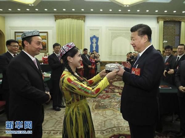 เมื่อวันที่ 10 มีนาคมที่ผ่านมา นายสีจิ้นผิง เลขาธิการคณะกรรมการกลางพรรคคอมมิวนิสต์ ประธานาธิบดี ประธานคณะกรรมการการทหารกลางจีน ได้เข้าร่วมรับฟังการอภิปรายของสมาชิกสภาผู้แทนฯ ที่มาจากเขตปกครองตนเองอุยกูร์ซินเจียง ซึ่งเป็นดินแดนที่มี 47 ชนเผ่า อาทิ ชาวฮั่น อุกูร์และคาซัคสถานอาศัยอยู่ร่วมกัน เป็นแผ่นดินที่สวยงามในสายตาของชาวจีน ทั้งยังเป็นแนวหน้าที่ป้องกันความปลอดภัยทางภาคตะวันตกเฉียงเหนือของจีนอีกด้วย