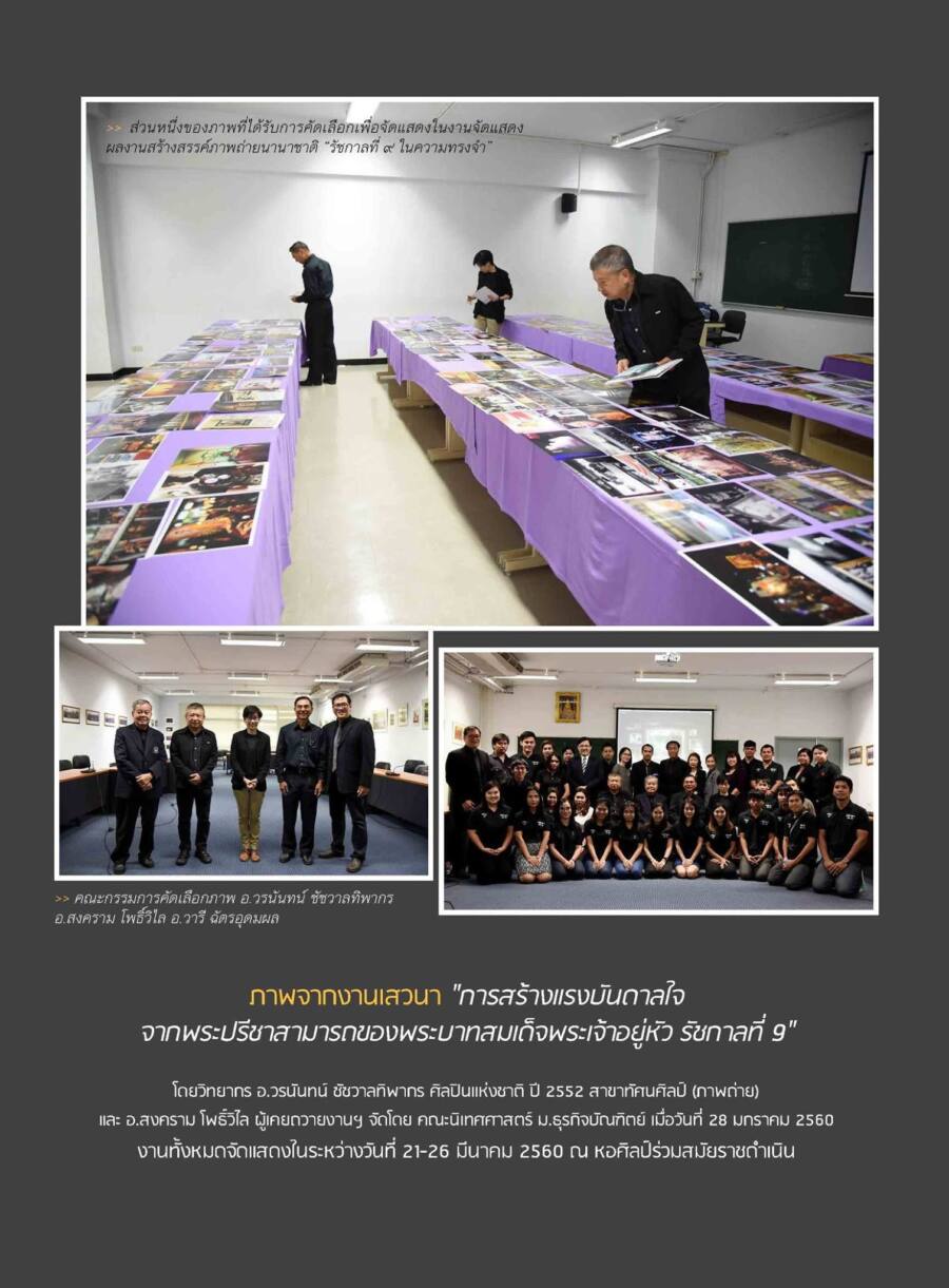 ขอเชิญร่วมชมผลงานใน งานแสดงผลงานสร้างสรรค์ภาพถ่ายนานาชาติ ภายใต้หัวข้อ “รัชกาลที่ ๙ ในความทรงจำ : In Remembrance of His Majesty King Bhumibol Adulyadej” ระหว่างวันที่ 21-26 มีนาคม 2560 ณ หอศิลป์ร่วมสมัยราชดำเนิน จัดโดยคณะนิเทศศาสตร์ ม.ธุรกิจบัณฑิตย์