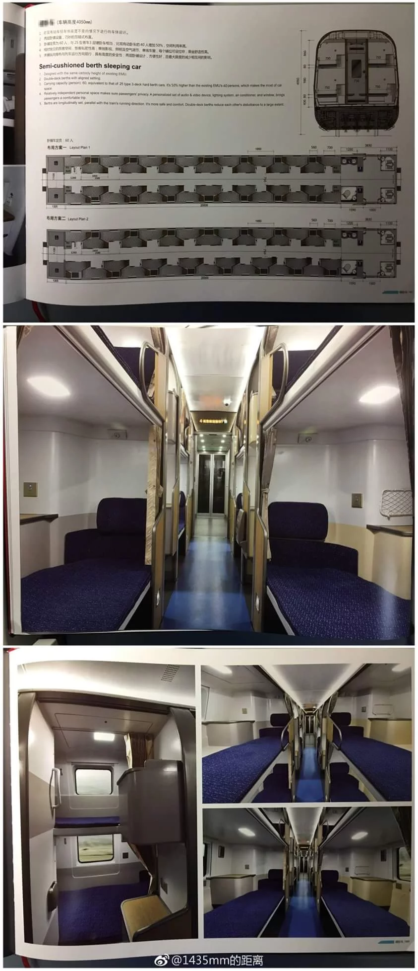 สิ่งที่สำคัญก็คือ ภายในขบวนรถไฟใหม่นี้ออกแบบให้ตู้นอนเป็นแบบแนวตั้ง มีเตียงสองชั้น ซึ่งทั้งด้านบนและด้านล่างก็มีหน้าต่าง สามารถมองเห็นทัศนียภาพด้านนอก อย่างไรก็ตามด้านนอกจะมองไม่เห็นภายในตู้นอน เห็นแต่เพียงสีดำเท่านั้น ทั้งนี้ รถไฟขบวนดังกล่าวออกแบบตามรถไฟความเร็วสูงชั้นเดียวแบบดั้งเดิม