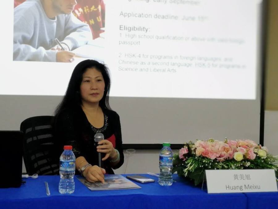 อาจารย์หวง เหม่ยซวี่ ตัวแทนจากฝ่ายดูแลนักศึกษาต่างชาติของมหาวิทยาลัย East China Normal University (ECNU) สรุปข้อเด่นของมหาวิทยาลัยไว้ เช่น มหาวิทยาลัยมีความเป็นนานาชาติมาก เนื่องจากมีจำนวนนักศึกษาต่างชาติสนใจมาเรียนทั้งหลักสูตรระยะสั้นและระยะยาวเพิ่มขึ้นทุกปี แสดงให้เห็นเรื่องการจัดการ สวัสดิการ สาธารณูปโภค ความมีระเบียบ ความหลากหลายทางวัฒนธรรม เรียกได้ว่ามีสิ่งแวดล้อมที่มีความเป็นสากล ข้อที่สองมหาวิทยาลัยมีกิจกรรมให้นักศึกษาได้รับประสบการณ์ชีวิตและรู้จักแบ่งปัน ทุกปีทางมหาวิทยาลัยจะนำนักศึกษาไปยังพื้นที่ที่ห่างไกลเพื่อเป็นอาสาสมัครสอนหนังสือ พวกเขาจะได้เห็นเมืองจีนในอีกรูปแบบหนึ่งและยังได้รู้จักการให้ ส่วนข้อสุดท้าย นักศึกษาที่นี่จะรักสถาบันและมีความเป็นน้ำหนึ่งใจเดียวกัน นั่นแสดงให้เห็นว่านักศึกษาที่นี่เมื่อเข้ามาแล้ว จะได้ใช้ชีวิต ได้รับทั้งความรู้และมิตรภาพ