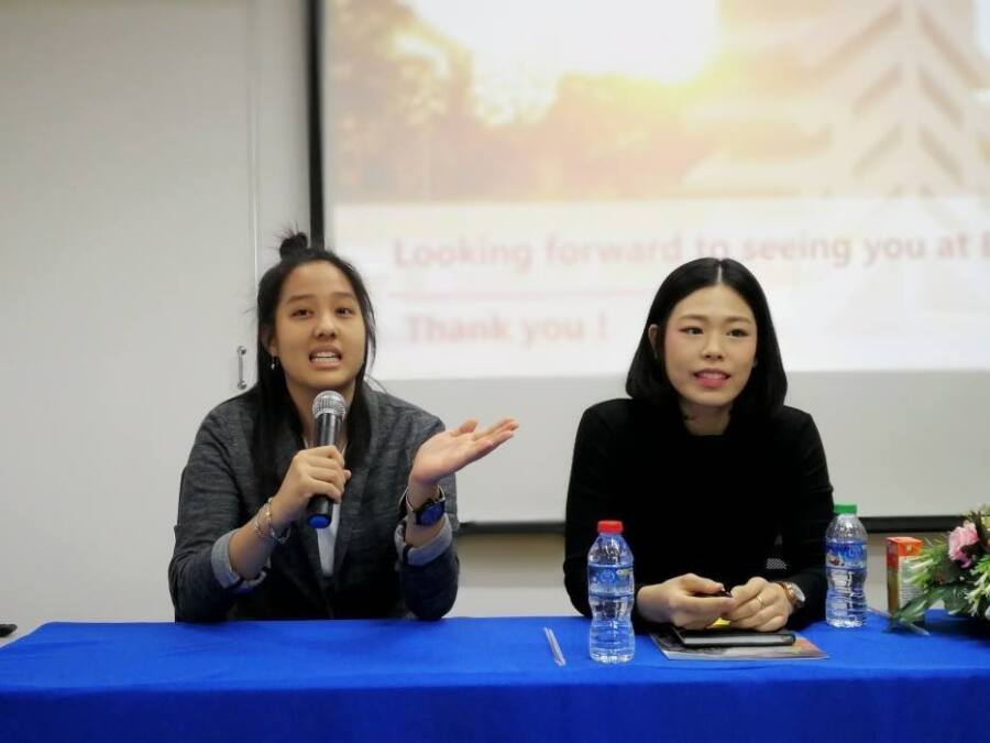ปิดท้ายกันด้วยคำแนะนำจากอาจารย์หวง ตัวแทนจากฝ่ายดูแลนักศึกษาต่างชาติว่า นโยบายหนึ่งแถบหนึ่งเส้นทางหรือ Belt and road จะทำให้วิสาหกิจจีนเข้ามาลงทุนหรือขยายสาขาที่ไทยมากขึ้น และแน่นอนว่าเด็กที่จบจากจีน มีความรู้ภาษาจีน และเข้าใจวัฒนธรรมจีนจะมีโอกาสมากกว่าคนอื่นแน่นอน