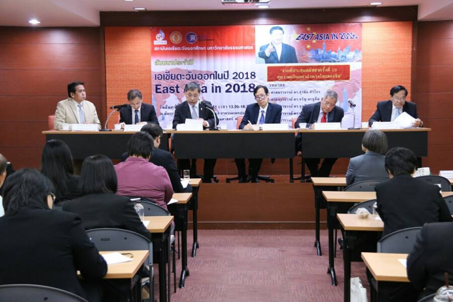 เมื่อวันที่ 26 กุมภาพันธ์ 2561 ศูนย์จีนศึกษาและศูนย์การเรียนรู้จีนศึกษาบรมราชกุมารี สถาบันเอเชียตะวันออกศึกษาฯ มหาวิทยาลัยธรรมศาสตร์ จัดการสัมมนาวิชาการในหัวข้อ “เอเชียตะวันออกในปี 2018: จากที่ประชุมสมัชชาครั้งที่19 สู่ความเป็นมหาอำนาจโลกของจีน” ณ ห้องประชุมประกอบ หุตะสิงค์ ชั้น 3 อาคารเอนกประสงค์ 1 มหาวิทยาลัยธรรมศาสตร์ ท่าพระจันทร์ โดยมีผู้ให้ความสนใจทั้งจากภาครัฐ เอกชน รวมถึงสื่อมวลชนเข้าร่วมฟังสัมมนา