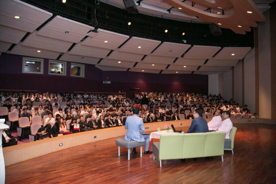 สมาคมสถาบันอุดมศึกษาเอกชนแห่งประเทศไทย (สสอท.) ร่วมกับ คณะบริหารธุรกิจ มหาวิทยาลัยรังสิต จัดงานเสวนา หัวข้อ “Cashless Society: the Pros and Cons” ขึ้นที่ อาคาร 15 เพื่อพร้อมรับมือกับยุคของสังคมไร้เงินสด ที่กำลังเข้ามามีบทบาท อย่างต่อเนื่องในประเทศไทย โดยมีวิทยากรพิเศษ จากสถาบันการเงินต่างๆร่วมเสวนา คุณธรรมชาติ โรจนเบญจวงศ์ ผู้อำนวยการ ผู้บริหารกลุ่มพัฒนาโมบายแอปพลิเคชัน ฝ่ายพัฒนาดิจิทัล โซลูชั่นเพื่อลูกค้ารายย่อย ธนาคารกรุงศรีอยุธยา จำกัด (มหาชน) คุณจิตติศักดิ์ สมบูรณ์ รองผู้อำนวยการ ฝ่ายส่วนการขายกิจการสาขา ธนาคารออมสิน และ คุณสุทธิคุณ ศิริอนันต์ ผู้ช่วยผู้อำนวยการฝ่ายบริหารและพัฒนาหนี้นอกระบบ ธนาคารออมสิน งานเสวนาดังกล่าวดำเนินรายการโดย ดร.กุลบุตร โกเมนกุล รองคณบดีฝ่ายบริหารและวิเทศสัมพันธ์ วิทยาลัยนานาชาติ และ อาจารย์ประจำ สาขาการเงินและการลงทุน คณะบริหารธุรกิจ มหาวิทยาลัยรังสิต