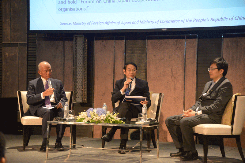 นายหนิง จี๋เจ่อ รองประธานคณะกรรมาธิการเพื่อการปฏิรูปและพัฒนาสาธารณรัฐประชาชนจีน ร่วมงานสัมมนาระดับนานาชาติ ในหัวข้อความร่วมมือในตลาดของประเทศที่สามระหว่างจีน-ญี่ปุ่น ในโครงการระเบียงเศรษฐกิจพิเศษภาคตะวันออกของประเทศไทย