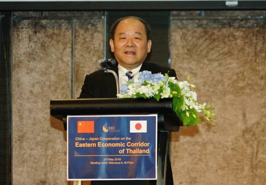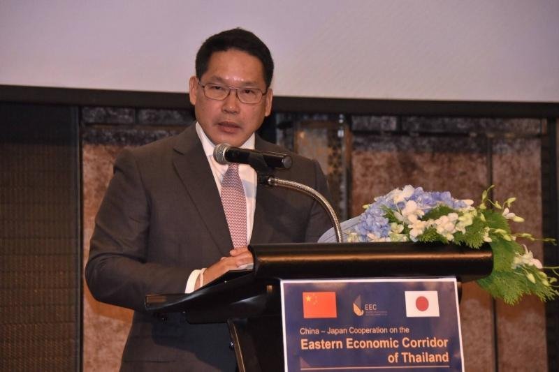สุดท้ายนี้ ผมขออำนวยพรให้การสร้างสรรค์ระเบียงเศรษฐกิจพิเศษภาคตะวันออกคืบหน้าอย่างราบรื่น และหวังเป็นอย่างยิ่งว่าบริษัทจีน ไทย ญี่ปุ่นสามประเทศมีความประสานงานและร่วมมืออย่างใกล้ชิดและใช้จุดแข็งของตนให้เกิดประโยชน์สูงสุด เพื่อพัฒนาระเบียงเศรษฐกิจพิเศษภาคตะวันออกเป็นระเบียงแห่งความร่วมมือ ระเบียงแบบวิน-วิน ระเบียงแห่งการพัฒนาและเขตพัฒนาพิเศษแห่งมิตรภาพ เพื่อสร้างคุณูปการต่อความร่วมมือพหุภาคี ต่อการพัฒนาเศรษฐกิจภูมิภาคและต่อการเพิ่มพูนความผาสุกแก่ประชาชนชาวไทย”