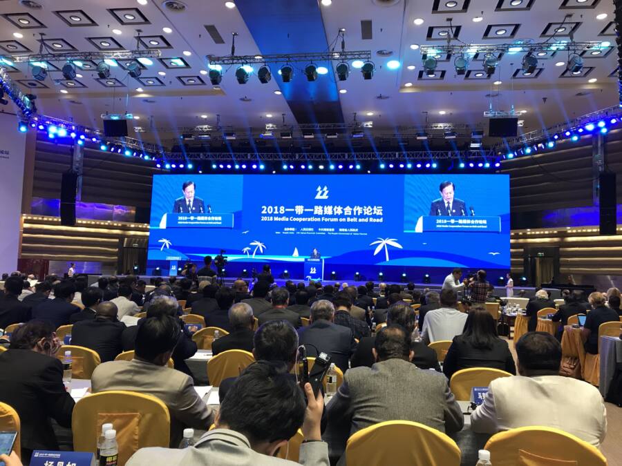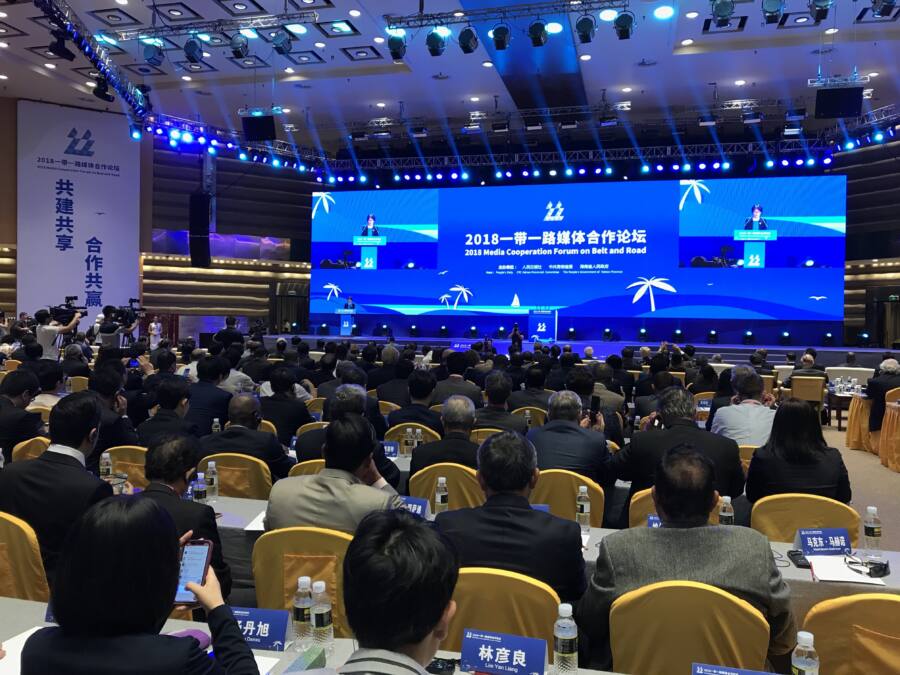 สื่อมวลชน นักวิชาการ และ ผู้บริหารองค์กรสื่อจากทั่วโลกกว่า 300 คนเข้าร่วมการประชุม 2018 Media Cooperation Forum on Belt and Road ณ ศูนย์การประชุมโป๋อ่าว มณฑลไห่หนาน ซึ่งจัดโดย People’s Daily และ รัฐบาลมณฑลไห่หนาน