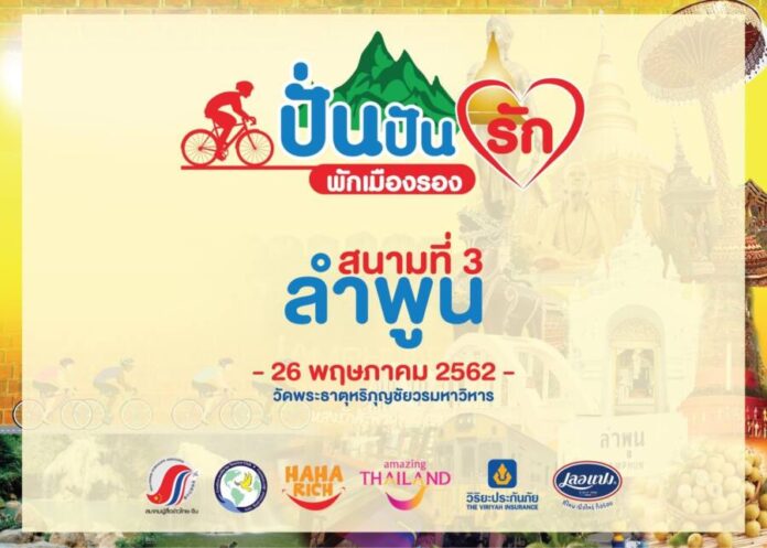 โครงการ “ปั่นปันรัก พักเมืองรอง” สนามที่ 3 พร้อมแล้ว ที่จะเกิดขึ้นในจังหวัดลำพูน วันที่ 26 พฤษภาคม 2562 นี้ โดยสมาคมผู้สื่อข่าวไทย-จีน และ ชมรมสื่อสร้างสรรค์เพื่อการท่องเที่ยว เจ้าภาพงาน ได้ร่วมกับ การท่องเที่ยวแห่งประเทศไทย, สมาคมท่องเที่ยวจังหวัดลำพูน, วิริยะประกันภัย, เลอแปง ร่วมกันเปิดเส้นทางให้กับนักปั่นทั้งชาวไทยและชาวต่างประเทศได้มาร่วมปั่นกันถึง 35 กิโลเมตร