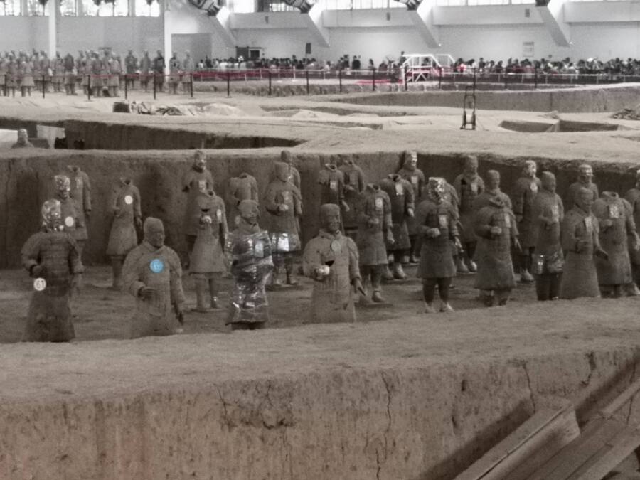 หนึ่งเดียวที่ไม่เหมือนใครและไม่มีใครบังอาจลอกเลียนได้คือ “สุสานกองทัพทหารดินเผาจักรพรรดิจิ๋นซี” หรือ “ฉินสื่อหวง ปิงหมาหย่ง” ที่ชาวนาค้นพบเศษซากทหารดินเผาเข้าโดยบังเอิญเมื่อปีพ.ศ. 2517 จุดที่พบอยู่ห่างจากเมืองซีอานประมาณ 35 กิโลเมตร เมื่อทางราชการเข้ามาขุดสำรวจอย่างเป็นทางการก็พบทหารดินเผาเท่าตัวจริงความสูง 1.7 ถึง 2.2 เมตร เป็นกองทัพกว่า 8,000 ตัว พร้อม อาวุธ รถศึก ม้าเทียมรถมากมายทั้งที่สมบูรณ์และแตกหัก