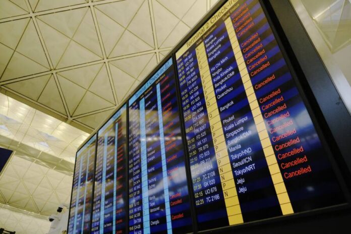 ในวันที่ 5 สิงหาคมฝ่ายต่อต้านจัดการประท้วงหยุดงาน ทำให้เที่ยวบินกว่า 250 เที่ยวบินถูกยกเลิก และรถไฟใต้ดิน 8 สาย เช่น Kwun Tong หยุดให้บริการนานกว่า 5 ชั่วโมง อุโมงค์ฮุงฮอมและอุโมงค์การจราจรหลายแห่งถูกปิดกั้น กลุ่มรุนแรงสุดโต่งขว้างระเบิดใส่สถานีตำรวจ และวางเพลิงในหลายจุด ในเวลา ทุ่มหนึ่งของคืนนั้น กลุ่มหัวรุนแรงสุดโต่งดึงธงชาติลงที่จิมซาจุ่ยอีกครั้งและโยนลงในทะเล