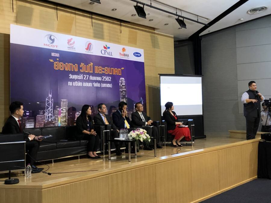 หลังจากนั้น เป็นการเสวนา“ฮ่องกง วันนี้ และอนาคต” เพื่อเปิดเวทีร่วมแลกเปลี่ยนประเด็นร้อนที่ทั่วโลกจับตามอง ร่วมวิเคราะห์ เจาะลึกวิกฤตการณ์ในฮ่องกง กับอนาคตศูนย์กลางการเงินของโลก ว่าไทยควรรับมืออย่างไร โดยมีวิทยากรคือ