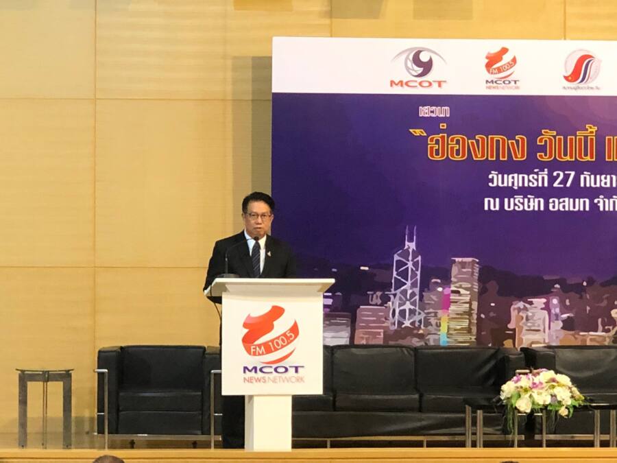 บมจ.อสมท (ช่อง 9 MCOT HD หมายเลข 30- สำนักข่าวไทย ) โดยคลื่นข่าว FM 100.5 MCOT News Network ร่วมกับสมาคมผู้สื่อข่าวไทย – จีนจัดกิจกรรม ฮ่องกง วันนี้ และอนาคต