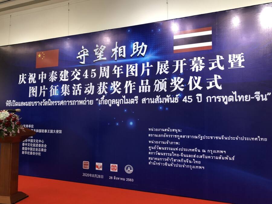 บ่ายวันนี้ (28 ส.ค.) มีพิธีเปิดและมอบรางวัลนิทรรศการถาพถ่าย “เกื้อกูลผูกไมตรี สานสัมพันธ์ 45 ปี การทูตไทย-จีน” ซึ่งสถานเอกอัครราชทูตสาธารณรัฐประชาชนจีน ประจำประเทศไทย ร่วมกับอีก 4 หน่วยงาน ได้แก่ ศูนย์วัฒนธรรมแห่งประเทศจีน ณ กรุงเทพฯ สภาวัฒนธรรมและส่งเสริมความสัมพันธ์ไทย-จีน สมาคมการค้าวิสาหกิจจีน-ไทย และสำนักข่าวซินหัวประจำประเทศไทย จัดขึ้นที่ศูนย์วัฒนธรรมแห่งประเทศจีน กรุงเทพฯ