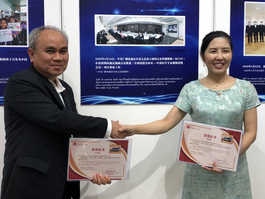 ทั้งนี้ มีองค์กรสื่อและหน่วยงานต่างๆส่งภาพถ่ายเพื่อเข้าร่วมกิจกรรมฉลอง 45 ปี ความสัมพันธ์ทางการทูตระหว่างไทย-จีน จำนวนกว่า 600 ภาพ คณะกรรมการได้คัดเลือกเหลือ 45 ภาพ เพื่อนำมาจัดแสดงในงานนิทรรศการ และหนึ่งใน 45 ภาพนั้น เป็นภาพถ่ายการประชุมร่วมกันของทีมงาน บริษัท อสมท จำกัด มหาชน กับองค์กรพันธมิตรคือ CMG ของจีน เพื่อวางแผนจัดการประชุมสดทางไกลแพทย์ไทย-จีน ถอดรหัสแก้ไขวิกฤตโควิด-19 เมื่อเดือนเมษายนที่ผ่านมา ซึ่งการประชุมด้วยระบบ Zoom Conference ครั้งนั้น มีการถ่ายทอดสดทั้งทางสถานี MCOT HD ช่อง 30 ของ อสมท และส่งสัญญาณไปยังประเทศจีนทางสื่อของ CMG ด้วย