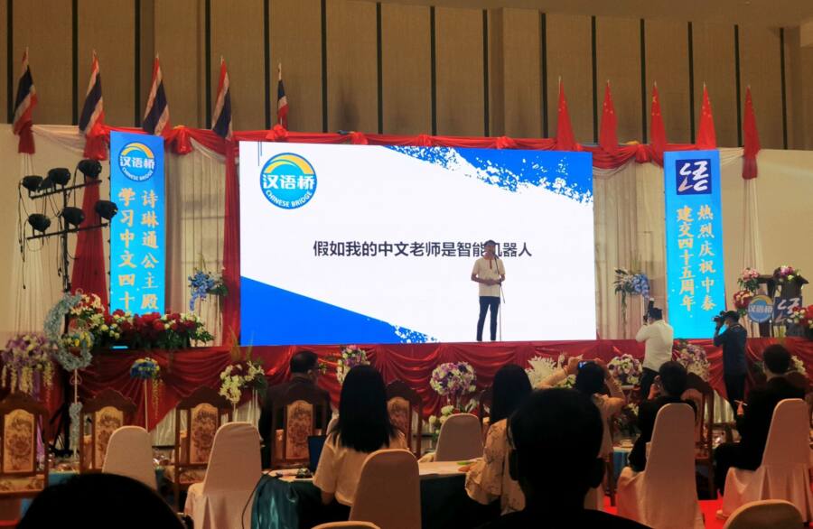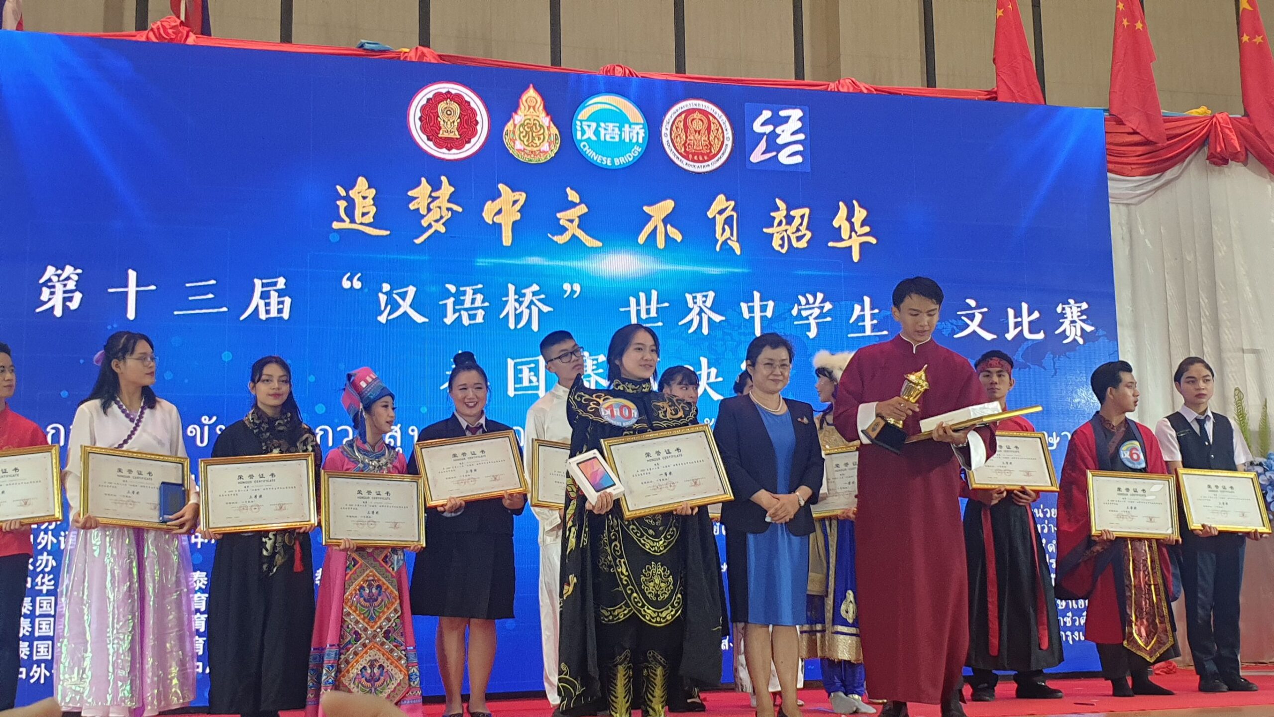 งานนี้ บรรดานักเรียนไทยต่างโชว์ฝีไม้ลายมือกันอย่างคึกคัก ไม่ว่าจะการพูดสุนทรพจน์ในหัวข้อต่างๆ อาทิ “คนหนุ่มสาวคือความหวังแห่งสัมพันธ์จีน-ไทย” “หากครูของฉันเป็นหุ่นยนต์” “ต้อนรับยุค 5G แห่งการเชื่อมโยงสรรพสิ่ง” “หนึ่งแถบหนึ่งเส้นทางกับการพัฒนาของไทย” ไปจนถึงการแสดง เช่น รำพัด ระบำจีน ดีดกู่เจิง อ่านบทกวี เล่านิทาน กังฟู ฯลฯ เรียกได้ว่าต่างคนต่างโดดเด่นในแบบของตัวเอง